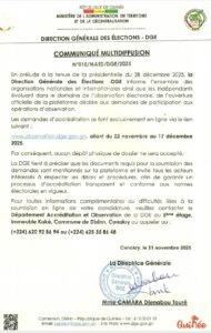 La DGE, sous la direction de Madame CAMARA Djenabou Touré, informe l’ensemble des organisations nationales et internationales, ainsi que les observateurs indépendants, que les demandes d’accréditation se feront exclusivement en ligne.